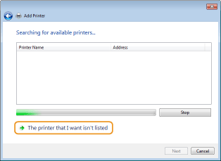 Noklikšķiniet uz [Sarakstā nav vajadzīgā printera ].