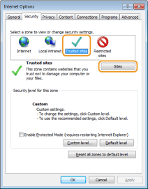 Sadaļā [Drošība] izvēlieties [Uzticamās vietnes] un noklikšķiniet uz [Vietnes].