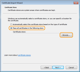 Izvēlieties [Ievietot visus sertifikātus šajā krātuvē] un noklikšķiniet uz [Pārlūkot].