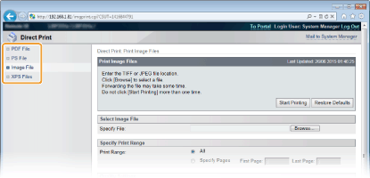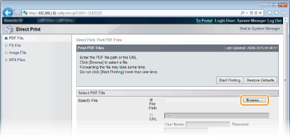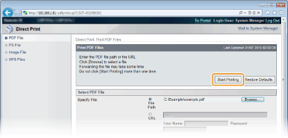 Ir iespējams drukāt failu no tīmekļa pārlūkprogrammas (Remote UI (Attālais interfeiss)), neatverot failu. Turklāt jūs varat izdrukāt PDF failu arī tīmeklī, norādot tikai vietrādi (URL).