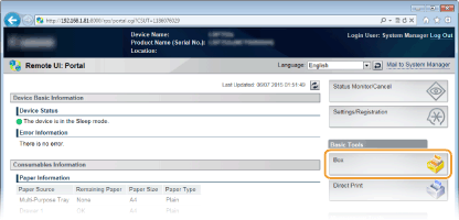 Startējiet utilītprogrammu Remote UI (Attālais interfeiss) un piesakieties pārvaldības režīmā.