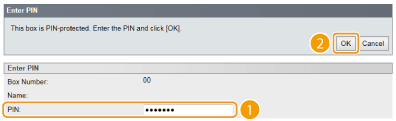 Kad tiek parādīts zemāk norādītais ekrāns, ievadiet PIN kodu un nospiediet [OK].