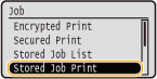 , lai izvēlētos <Stored Job Print>, un nospiediet