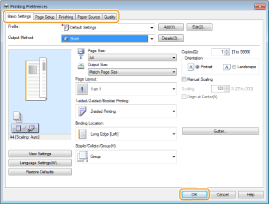 Norādiet nepieciešamos drukāšanas iestatījumus un noklikšķiniet uz [OK].