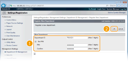 [Edit] sadaļā [Department ID Management PIN Confirmation Settings]