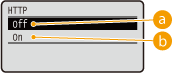 HTTP tiek izmantots sakariem tīklā, piemēram, lai piekļūtu iekārtai, izmantojot Remote UI (Attālais interfeiss). Ja lietojat USB savienojumu, taču neizmantojat citas HTTP funkcijas, varat deaktivizēt HTTP, lai bloķētu ļaunprātīgu trešo personu piekļuvi, lietojot neizmantotu HTTP portu.