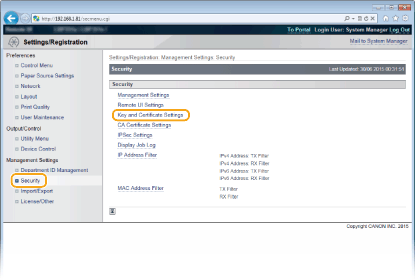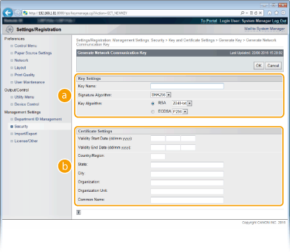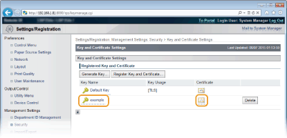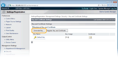 [Key and Certificate Settings].