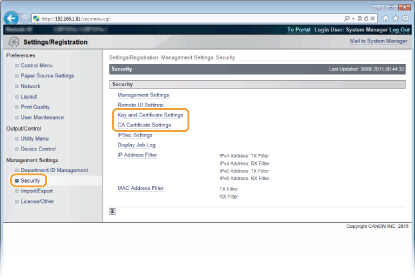 [Key and Certificate Settings] vai [CA Certificate Settings].