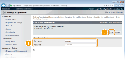 Ievadiet atslēgu pāra nosaukumu un paroli un pēc tam noklikšķiniet uz [OK].