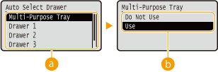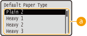 Common settings (Vispārēji iestatījumi)Iestatījumi ir tādi paši kā <Paper Source> iestatījumi sadaļā Iestatīšanas izvēlne. Šeit norādītie iestatījumi tiks lietoti arī <Paper Source> iestatījumiem.