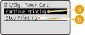 <Continue Printing> vai <Stop Printing>