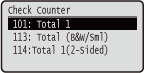 Varat pārbaudīt arī skaitītāja vērtību, sadaļā <Check Counter> atlasot iespēju Utility Menu, kā arī šo vienumu.