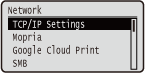 Ja ziņojums <Network> netiek parādītsJa iespējas <Network> iestatījums sadaļā <Interface Selection> ir <Off>, <Network> iestatīšanas izvēlnē netiks parādīts. Interface Selection