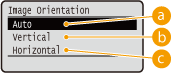Ja norādītais iestatījums (<Vertical> vai <Horizontal>) neatbilst attēla orientācijai, tiks izdrukāts samazināts attēls.