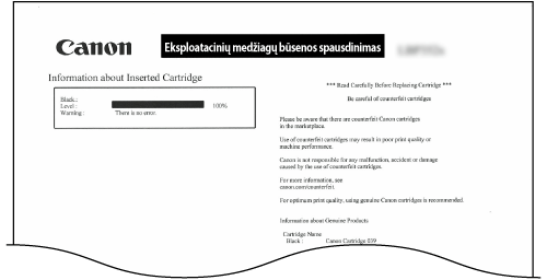 Išspausdinę ataskaitas ir sąrašus galite patikrinti eksploatacinių medžiagų būklę ir aparato parametrus.