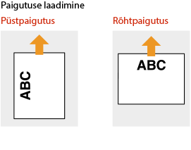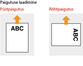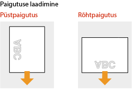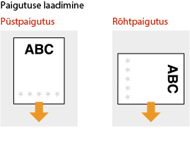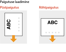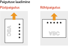 Selles jaotises kirjeldatakse põhiliselt eelprinditud paberi sisestamist õiget pidi ja õige paigutusega. Paberisahtlisse või universaalalusele paberi asetamise üldised juhised on esitatud allpool. |