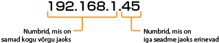 IP-aadress koosneb neljast numbrist, mis on eraldatud punktidega (.) (näiteks 192.168.1.45). Iga number peab olema vahemikus 0 kuni 255. Üldjuhul määrake kolm esimest numbrit samad nagu marsruuteril, sest need on võrgus ühised. Viimane number (näiteks 45 aadressis 192.168.1.45) määrake teistest seadmetest erinev.
