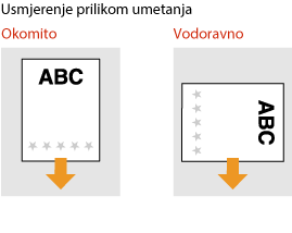 Pri korištenju papira na kojem je već otisnut logotip pazite na usmjerenje papira prilikom umetanja. Pravilno umetnite papir kako bi se ispis obavio s odgovarajuće strane papira s logotipom.