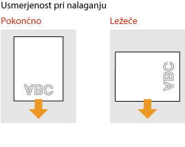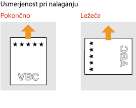 Če uporabljate potiskani papir z logotipom, pri nalaganju pazite na pravilno smer papirja. Papir naložite pravilno, da se bo natisnil na tisto stran, na kateri je logotip.