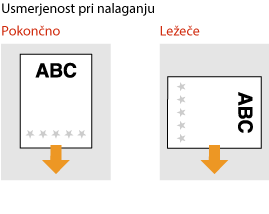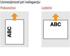 To poglavje v glavnem opisuje nalaganje potiskanega papirja v pravi smeri in postavitvi. Splošna navodila za nalaganje papirja v kaseto za papir ali na večnamenski pladenj najdete v spodnjih poglavjih.