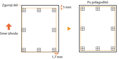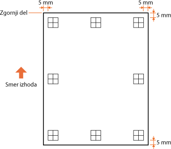 . Na osnovi teh oznak določite prilagoditveno smer in razdaljo. Če je položaj tiskanja normalen, so vse oznake natisnjene na mestu, ki je 5 mm oddaljeno od najbližjega roba papirja.