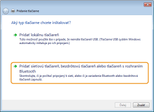 Ak používate systém Windows 7/Server 2008, kliknite na položku [Pridať sieťovú, bezdrôtovú alebo Bluetooth tlačiareň].