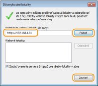 Uistite sa, že je zobrazená „https://<IP adresa zariadenia> alebo <názov hostiteľa zariadenia>.<názov domény>/“ a kliknite na položku [Pridať]