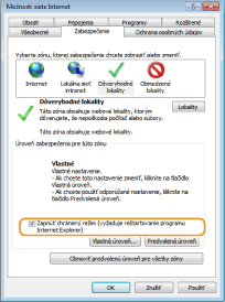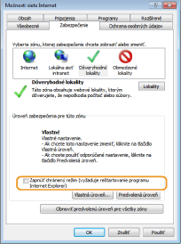 Ak ste zrušili označenie zaškrtávacieho rámčeka [Zapnúť chránený režim (vyžaduje reštartovanie programu Internet Explorer)] v kroku 7, označte zaškrtávací rámček.