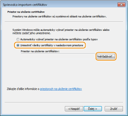Vyberte položku [Umiestniť všetky certifikáty do nasledujúceho priestoru] a kliknite na položku [Prehľadávať].