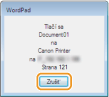 Zrušenie z aplikácieV niektorých aplikáciách sa zobrazí okno tak, ako je to nižšie. Kliknutím na položku [Zrušiť] môžete zrušiť tlač.