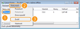 vyberte dokument, ktorý chcete zrušiť, a stlačte tlačidlo