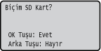 SD kartı, işletim panelinin ayar menüsündeki <SD Kartı Bakımı> öğesinin altında <Biçim> öğesini seçerek başlatın. SD Kartı Bakımı