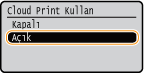 <Cloud Print Kullan> seçeneğini belirleyin ve