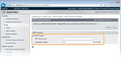 NTP/SNTP sunucusu ile iletişimi test etme[Ayarlar/Kayıt]