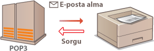 Eğer POP3 posta sunucusundan e-posta yazdırılması etkinleştirilmiş ise, e-postaları manüel olarak da alabilirsiniz. Posta sunucusuna e-postaları otomatik olarak almadan önce bağlanmak istediğinizde veya makine, e-postaların otomatik olarak alınmasını önleyecek biçimde yapılandırılmış olduğunda, e-postaları manüel olarak almak için aşağıdaki prosedürü uygulayın.