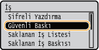 tuşlarını kullanarak <Güvenli Baskı> seçeneğini belirleyin ve
