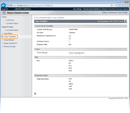 Tüm yazdırma işlerinin durumu, Department ID Management (Departman Kimlik Yönetim) ayarlarından bağımsız olarak görüntülenir.