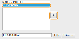 Bir MAC adresi seçin ve [Sil] öğesini tıklatın.