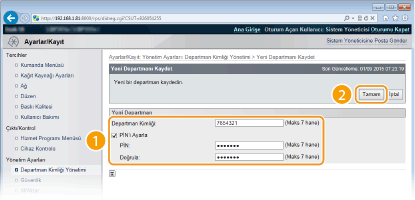 [Departman Kimliği Yönetimi PİN Onaylaması Kullan] Onay kutusunu seçin