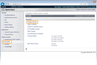 [Güvenlik]  [Yönetim Ayarları] öğesini tıklatın.