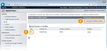 Anahtarlar ve sertifikalar listesinden bir anahtar seçin ve [Varsayılan Anahtar Ayarları] öğesine tıklayın.