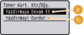 <Yazdırmaya Devam Et> veya <Yazdırmayı Durdur>