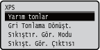 USB Doğrudan Yazdırma ve Doğrudan Yazdırma ile kullanılabilen XPS dosyaları ile ilgili tüm ayarlar, kısa açıklamalarla birlikte listelenir. Varsayılan ayarlar kama sembolü (