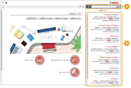 כדי להציג את חלון החיפוש. מכיל תיבת טקסט לביצוע חיפוש לפי מילת מפתח ולאיתור הדף שאתה מחפש.