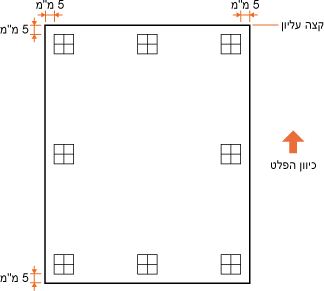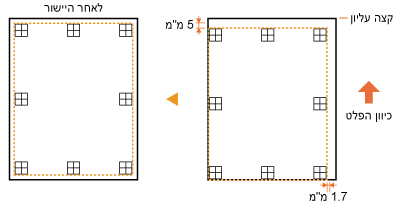 מודפסים. קבע את הכיוון ואת המרחק שיש לכוונן בהתאם לסימנים אלה. כאשר מיקום ההדפסה תקין, כל הסימנים מודפסים במיקום של 5 מ"מ מהקצה הקרוב ביותר של הנייר.