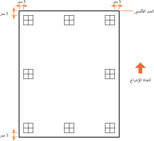 . حدد الاتجاه والمسافة بناءً على هذه العلامات. عندما يكون موضع الطباعة طبيعيًا، تتم طباعة جميع العلامات في موضع ٥ ملم من الحافة الأقرب بالورق.