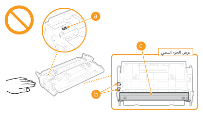 ) أو الوصلات الكهربائية ( ). ولتجنب خدش سطح الاسطوانة داخل الجهاز أو تعريضها للضوء، لا تفتح الغطاء الواقي للأسطوانة ( ).