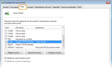 Comprovació del port d'impressora