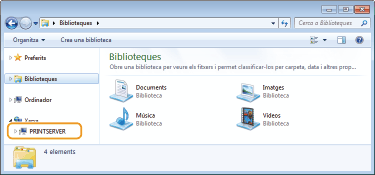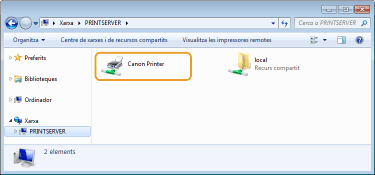 Seleccioneu el servidor d'impressió a [Xarxa] o [Els meus llocs de xarxa].