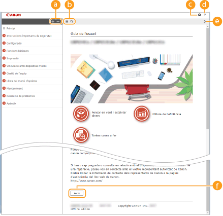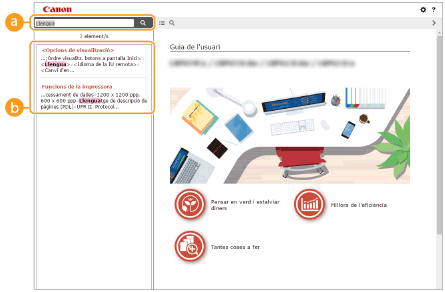 Feu-hi clic perquè es mostri informació sobre com visualitzar l'Guia de l'usuari, com fer una cerca i altres tipus d'informació.